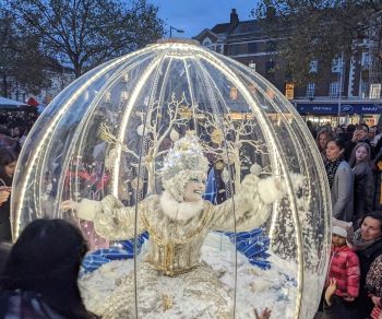 ![]() | Living Snow GlobeThe most magical Christmas act, guaranteed to seriously impress audiences! A Living Snow Globe, full of unique interactive special effects, glides through the event space wowing everyone. This Living Snow Globe contains a beautifully detailed winter wonderland scene, covered in a blanket of snow, waiting to be brought to life by your interaction. The ornately decorated Snow Queen, encapsulated within her winter realm, greets spectators warmly despite her surrounding weather. She controls the many special effects of the globe, as well as its graceful movement through the audience. Should a spectator venture closer and press the big button on the front of the globe, they will be rewarded by immediately transforming her world with a monumental snow storm with thousands of snowflakes whirling around this spellbinding sphere. The effect is stunning in the daytime with the sun catching the shimmer of the snow and the Snow Queen’s intricate costuming, as well as at night when the globe's illuminations make everything truly sparkle, drawing people towards it. |