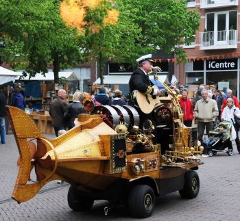 ![]() | Muziek Aller TijdenDe schoorsteen rookt, de tandwielen draaien en muziek begint te spelen. Deze stoere zangeres brengt u “muziek aller tijden”! Deze rijdende tijdmachine laat u meegenieten op deuntjes van de Beatles, Rolling Stones, Robbie Williams en vele andere bekende artiesten. Deze imposante steampunk wagen word elektrisch aangedreven en is opgebouwd uit gerecyclede materialen. Door een professionele geluidsinstallatie klinken de tonen tot ver in de omgeving. Eventueel kan de zangeres begeleid worden door drie metershoge steltenlopers. |