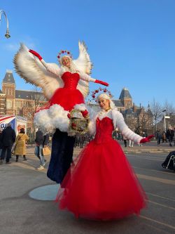 ![]() | Red AngelOur Heavenly Angel act brings light and cheer wherever they go. An elegant angel on stilts floats gently on a cloud, while her radiant companion hands out Christmas candy canes and smiles. Perfect for Christmas markets, winter festivals, or any festive occasion that needs a little magic! ✨ Cost: 3 x 30 or 2 x 45 minutes € 1.155,00 Travel costs € 0,35/km Amsterdam v.v. |