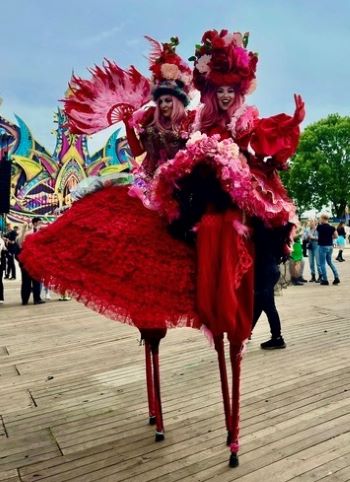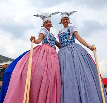 ![]() | Royal Shine!The Royal Ladies love parties! They love to Shine with each other and with the audience. Parading, they invite the audience for a light chat and maybe even a dance at high level. An entertaining appearance on 1 and 1.5 meter high stilts. This verbal act can be booked as solo, duo, trio or quartet. |