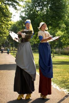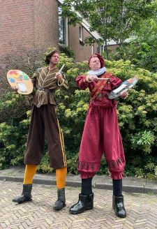 ![]() | Great Masters of PaintingA colour palette of (circus) animations around Rembrandt, Vermeer and Van Gogh. Born in the 17th/18th century, they are still among the greatest artists. These fast-painting stilt walkers tower high above the audience. In a very short time, strangers are put together and captured for eternity. As a reward, a quick portrait follows as a souvenir. Speed dating of speed painters for a picturesque experience. Rembrandt's menThe two elegant protagonists of "De Nachtwacht" have seen how Rembrandt earned his money with painting. Following his example, they look for suitable models for their quick portraits. With a skilled hand, unexpected compositions are put on the canvas in a matter of seconds. |