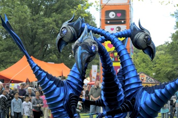![]() | Sven RoelantsKhalid & Co"Khalid & Co" is a stilt-walking act that gave Sven international fame. High above the heads of the audience he dances and seduces you with his colourful and sympathetic dragon. Or is it a camel? His grunting sound and characteristic movements make the whole lifelike and will certainly leave young and old not untouched. ![]() |