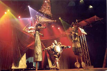 ![]() | Circus Theatre VladimirBlurpA gigantic but friendly... well, what is it actually? A swamp beast, gurgel freak, spiky spider, let your imagination ponder on it! Blurp is willing to give you a friendly paw, has a disarming wink, is capable of trotting, and doing other skips and hops. He even dances the polka! Your public is welcomed with a smashing Blurp-build-up show. Vladimir puts the parts together as if Blurp were an ingenuous assembly kit. The public participates and is constantly surprised by this amature "biologist". |