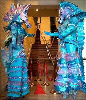 ![]() | ValentinaOn waves of Victorian elegance, these two stilt figures dance on high stilts. They take you into an enchanting world of Couture and Venetian atmospheres! With graceful wings and splendor of colors, they gracefully swing in a beautiful choreography with a classical musical. This is interspersed with game elements that allow the audience to interact. An enchanting mobile walk / dance act with a harmonious whole, in which the audience is lifted and once again lingered in the Golden Age. Music is added on the belt in the costume. |