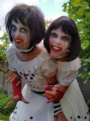 Graaf en Gravin van DuisterMet een creepy kinderwagen rijden ze, Graaf en Gravin Van Duister. Ze spreken mensen aan, delen enge snoepjes uit en zingen creepy liederen, begeleid door draailier, doedelzak, accordeon of luit. Je kunt er niet ongemerkt aan voorbijgaan. Heel interactief, mobiel en uitermate geschikt voor Halloween. De Gravin kan de kaart leggen, zo u wilt… maar we staan niet voor de gevolgen in. Uitkoopsom 4 x 40 minuten € 1.000,00 Reiskosten € 0,35/km Aardenburg, NL v.v Exclusief BTW |