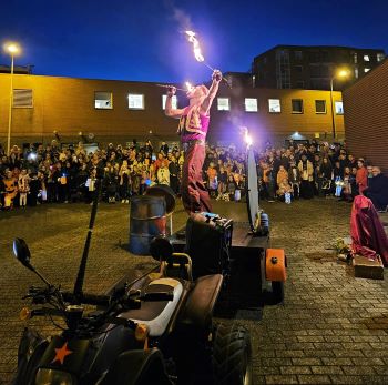![]() ![]() | Marini MendozieDe Vonkende VeelvraatBeleef een vurige opwinding wanneer "De Vonkende Veelvraat" het podium betreedt met een betoverende show van pyrotechniek. De Vonkende Veelvraat lust vuur rauw. Hij kijkt niet op een paar happen meer of minder. En spuwt ermee. Met vlammen tot wel 5 meter hoog! Vonken! Dat doet het zeker, als hij het jongleren met vuurwerk ter hand neemt. Er is zoveel meer: - De vlammenwerper smijt met vuur - Stalen firedrums produceren vurige slagen - de brandende ster rijst knetterend naar een hoogtepunt. Kortom: Een vurig spektakelstuk: leuk én lekker-spannend tegelijk. Ondersteund door powerful music. Perfect voor festivals, bedrijfsfeesten en privéfeesten. De show kan ok als duo worden gespeeld. ![]() |