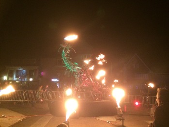 ![]() ![]() | Paka The UncredibleElsie DragonEven voorstellen! Een grootschalige animatronic kinetische sculptuur (zeven meter lang / zes meter vleugelspanwijdte). Gebeeldhouwd uit gevormd staal, gevonden voorwerpen en overtollige technologie. Hand bewerkte vloeiende bochten zorgen voor een organisch gevoel als contrast met de industriële gerecyclede onderdelen die je in de draak kunt zien.. De draak is in staat om 36 verschillende bewegingen uit te voeren, zoals het klapperen van haar bek, het uitstrijken van de vleugels en het bewegen van de poten. Er zijn 30 verschillende speciale effecten ingebouwd waaronder, rook, licht, geluid en vuur. Elsie heeft een propaangas vuur systeem. Ze spuwt vuur zoals iedere zichzelf respecterende draak dit doet. Het publiek kan haar zelf bedienen door middel van knopkastjes die opgehangen worden. Elsie Dragon is een "innemende" draak robot .. altijd op zoek naar vers vlees festival. Maak je geen zorgen, ze bijt niet ze spuugt alleen vuur. ![]() |