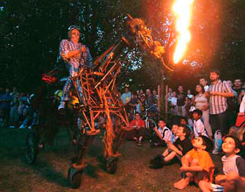 ![]() | Flogging a Dead HorsePaka The Uncredible is echt ongelooflijk. Deze voorstelling is een unieke combinatie van mens en machine. Een ongelooflijk staaltje van toegepaste kennis van pneumatiek, propaangassystemen, mechanische machinerie, pyrotechniek en afstandbestuurbare electroniek. Samen met het flamboyante spel en de gedurfde acrobatiek van acteur/wetenschapper Simon Collins een voorstelling die nog lang bij blijft. ![]() |